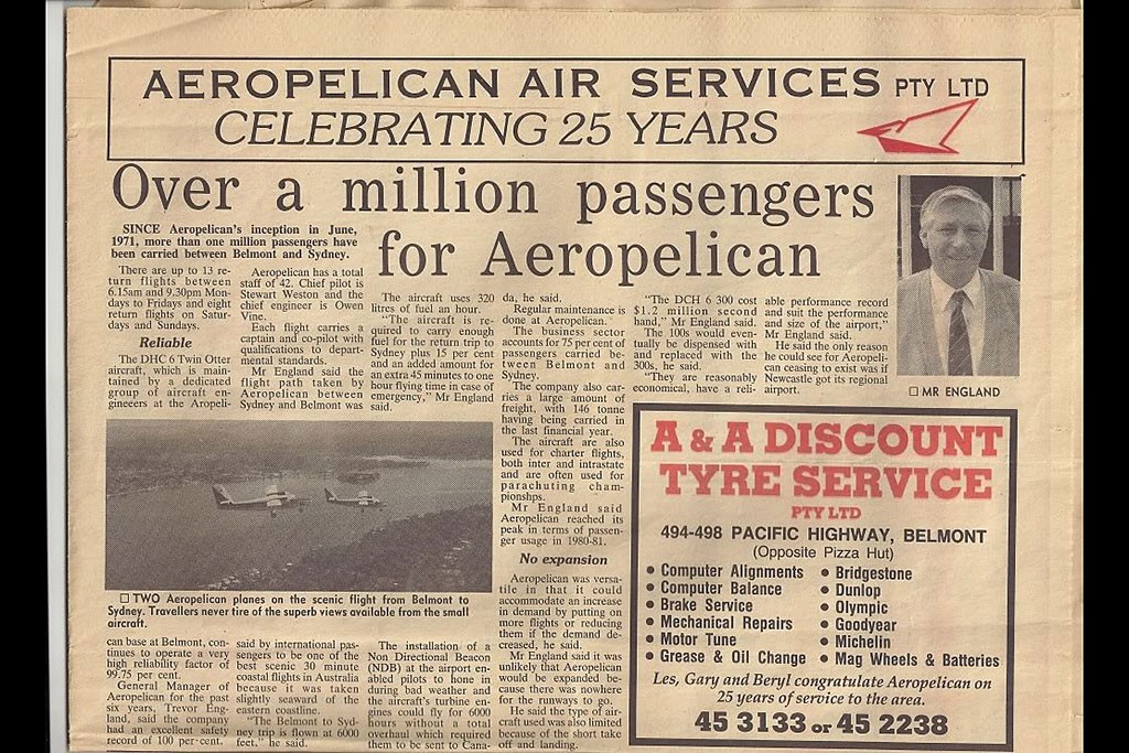 At the time of Keith’s passing in 1976, his Newcastle-based Hilder family owned Aeropelican Air Services. Sold in 1980 to Masling Airlines, it operated services for its associated company Ansett Australia. Ansett Australia’s collapse in September 2001, placed Aeropelican into administration to be acquired by International Air Parts in April 2002. The airline entered into a commercial agreement with Regional Express Airline in 2003 and commenced services from Sydney to Newcastle’s other airport, Williamtown in 2004. The end of a long era, March 2005 saw the airline discontinue service.